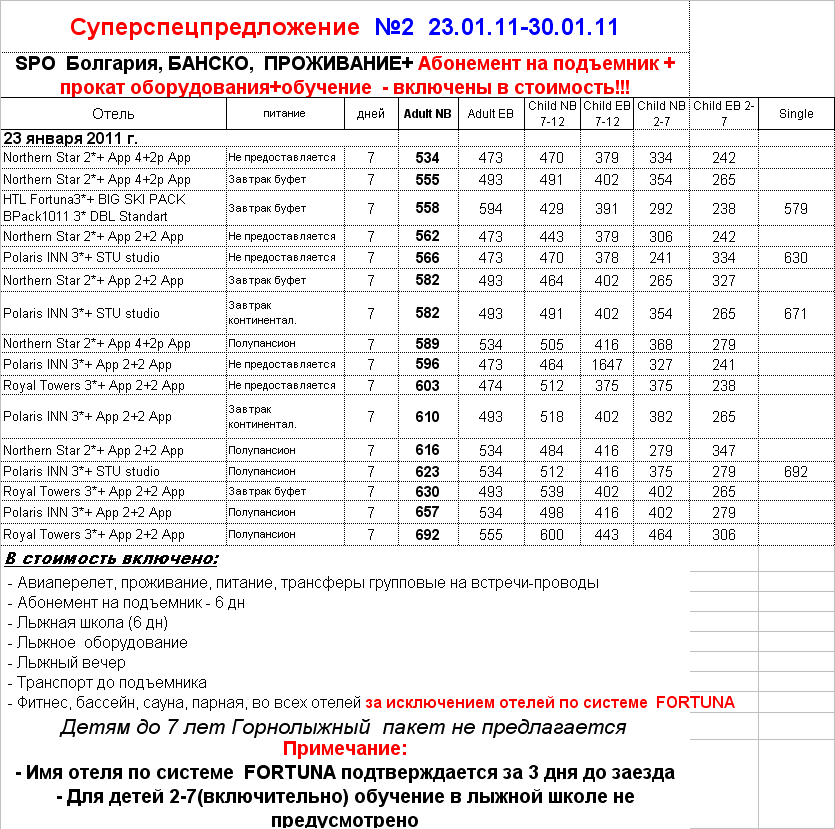 11 Янв 2011 13:31:53 БОЛГАРИЯ. SPO?2 БАНСКО ПРОЖИВАНИЕ+ ПОЛНЫЙ ЛЫЖНЫЙ ПАКЕТ 23.01-30.01 от фирмы АЛМА ТУР