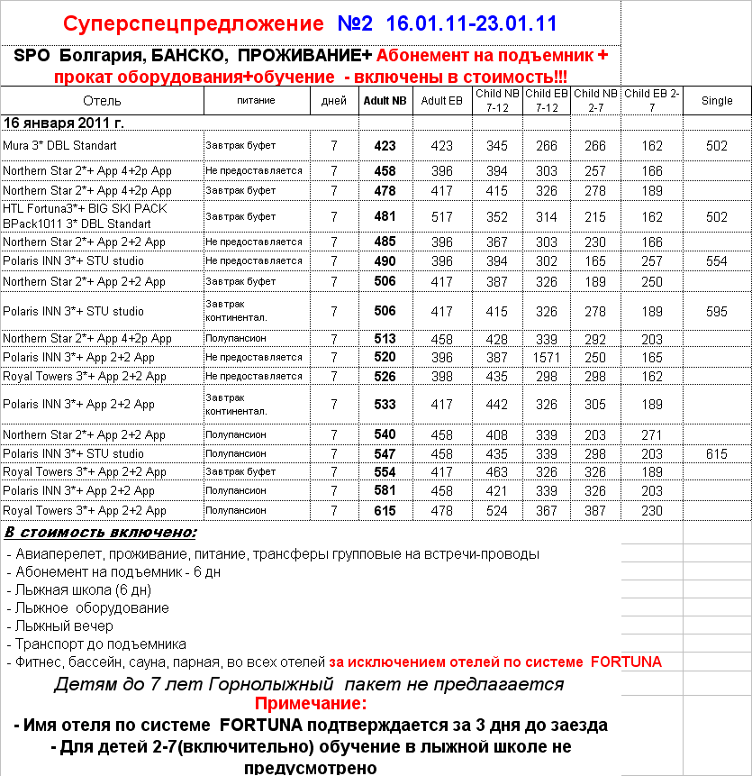 11 Янв 2011 13:31:56 БОЛГАРИЯ. SPO?2 БАНСКО ПРОЖИВАНИЕ+ ПОЛНЫЙ ЛЫЖНЫЙ ПАКЕТ 16.01-23.01 от фирмы АЛМА ТУР