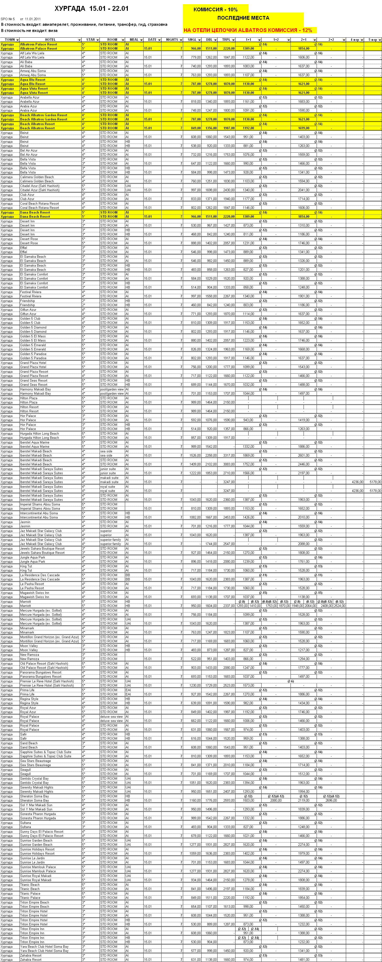 11 Янв 2011 14:32:28 ЕГИПЕТ - ХУРГАДА с 15.01 по 22.01 от фирмы VIVARILLA