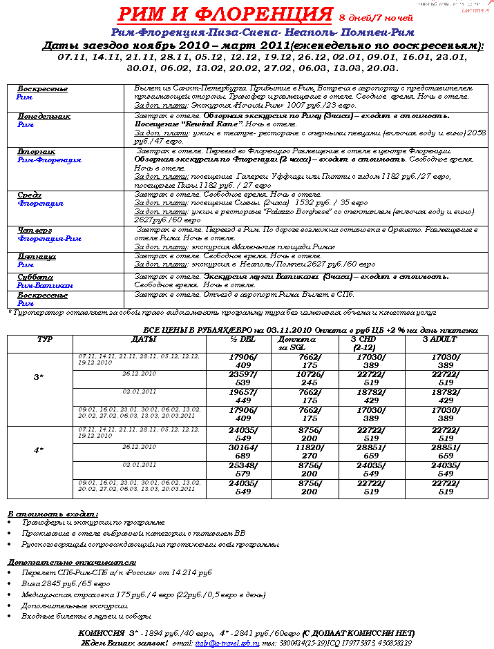 11 Янв 2011 15:17:35 ИТАЛИЯ Рим и Флоренция ноябрь2010-март 2011 от фирмы АКАДЕМИЯ