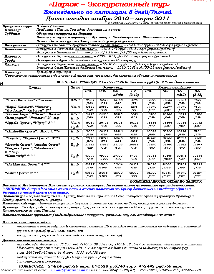 11 Янв 2011 15:19:36 ФРАНЦИЯ Париж экскурсионный ноябрь 2010 - март 2011 от фирмы АКАДЕМИЯ