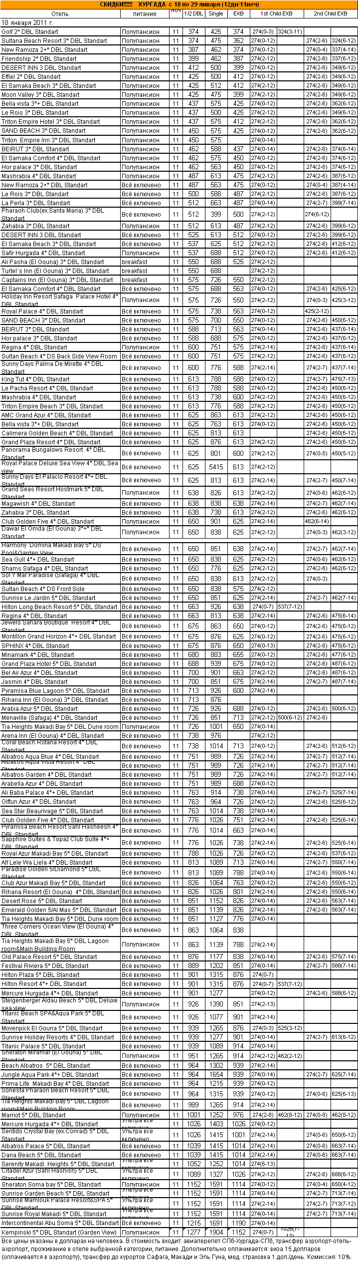 12 Янв 2011 12:05:37 ЕГИПЕТ - ХУРГАДА с 18.01 по 29.01 от фирмы АЛМА ТУР