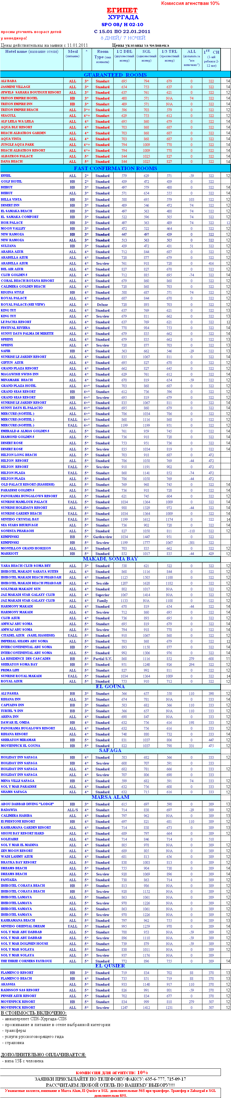 12 Янв 2011 16:10:02 ЕГИПЕТ - ХУРГАДА 15.01-22.01 от фирмы EL DAKAMY TRAVEL