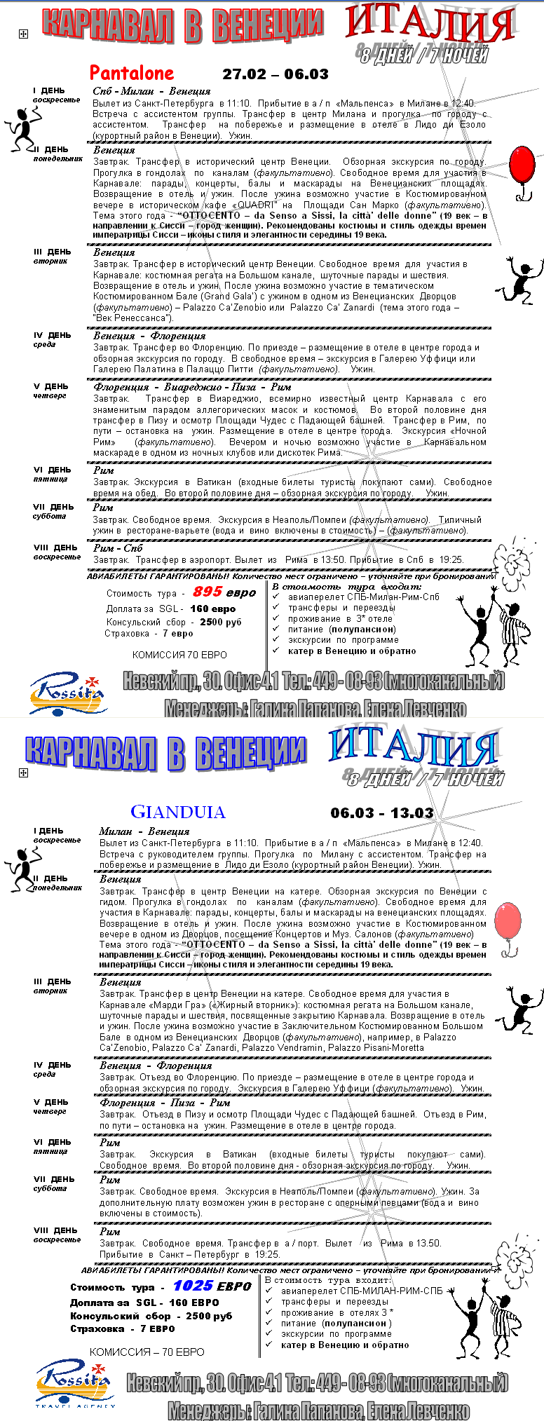 ИТАЛИЯ: КАРНАВАЛ В ВЕНЕЦИИ от фирмы РОССИТА |