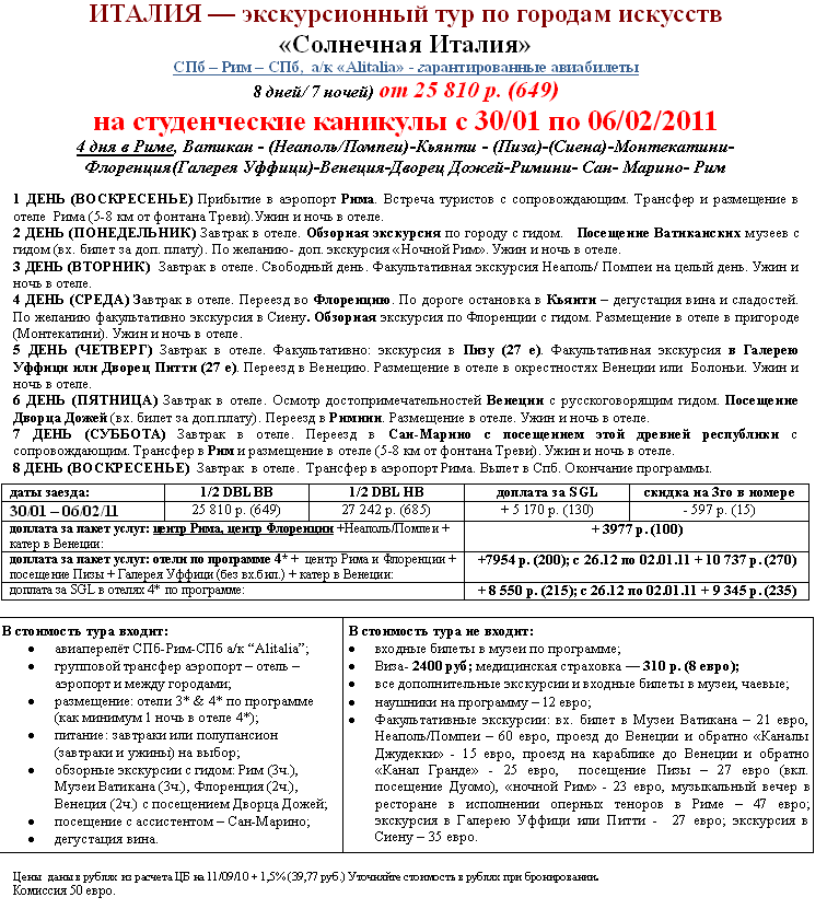 13 Янв 2011 14:03:18 ИТАЛИЯ 30.01-06.02 - Солнечная Италия экскурсионный тур по городам искусств от фирмы АРТ-ТРЕВЕЛ