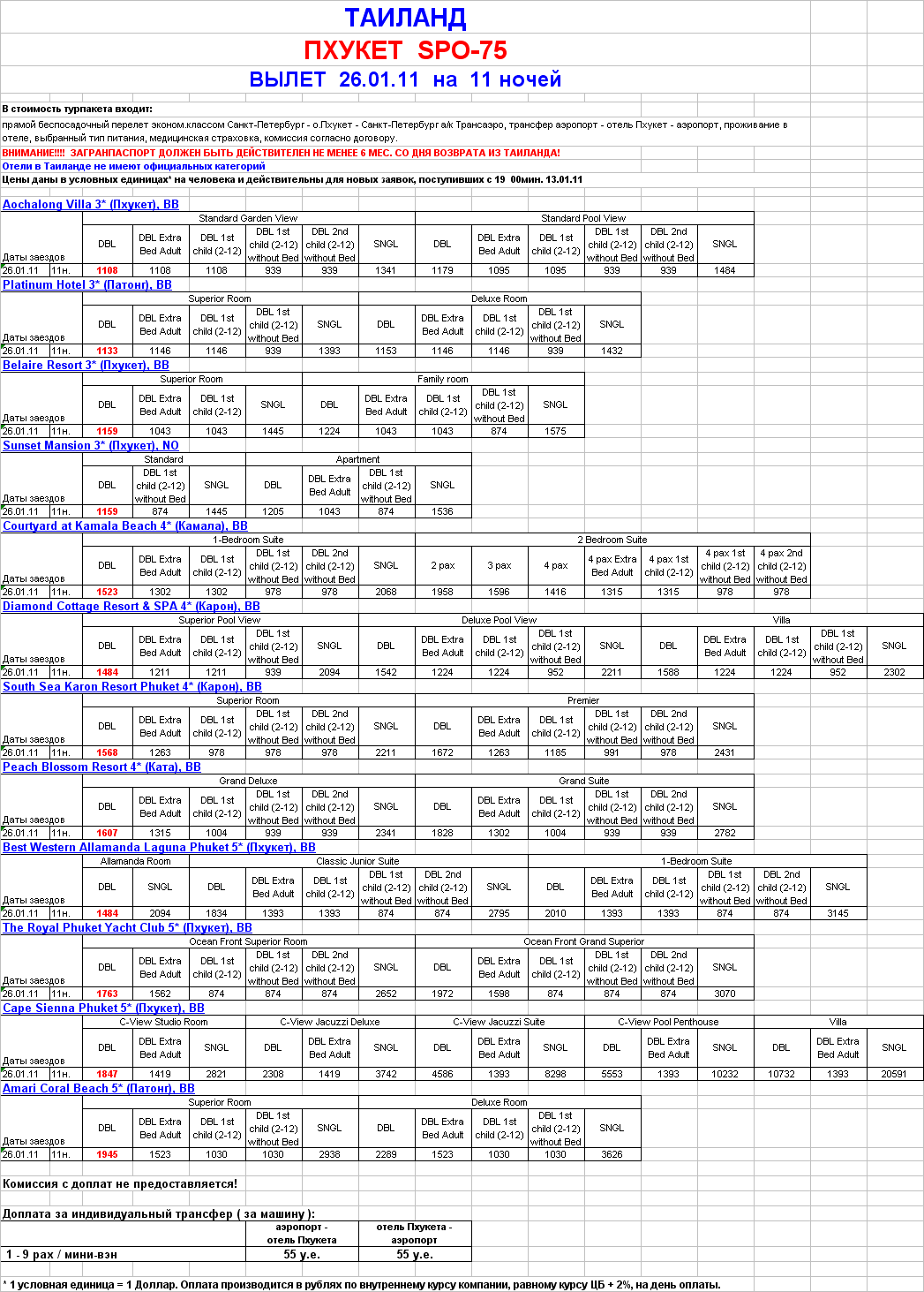14 Янв 2011 15:33:02 ТАИЛАНД - Пхукету, вылеты в январе, феврале, марте от фирмы ЮЖНЫЙ КРЕСТ