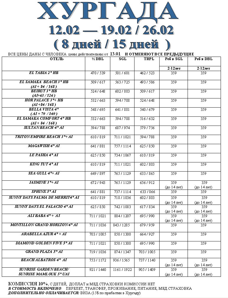 17 Янв 2011 13:42:34 ЕГИПЕТ. ХУРГАДА с 12.02 на 8 и 15 дней от фирмы ФЛАМИНГО