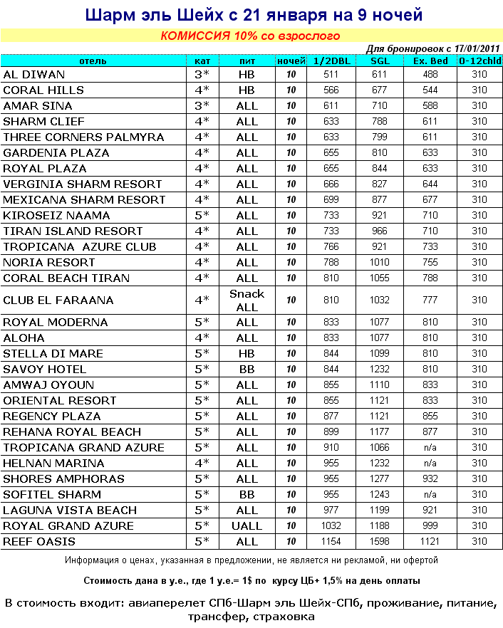 17 Янв 2011 16:41:45 ЕГИПЕТ - ШАРМ-ЭЛЬ-ШЕЙХ с 21 января на 9 ночей от фирмы БАГИРА