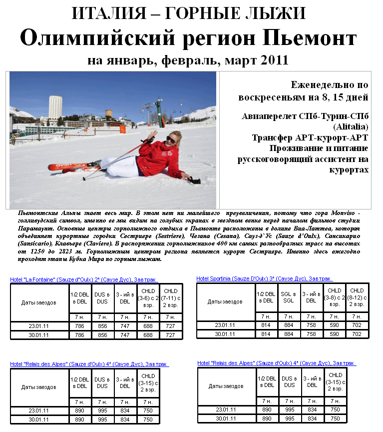 17 Янв 2011 16:59:39 ИТАЛИЯ. Туры на горнолыжные курорты от фирмы АРТ-ТРЕВЕЛ