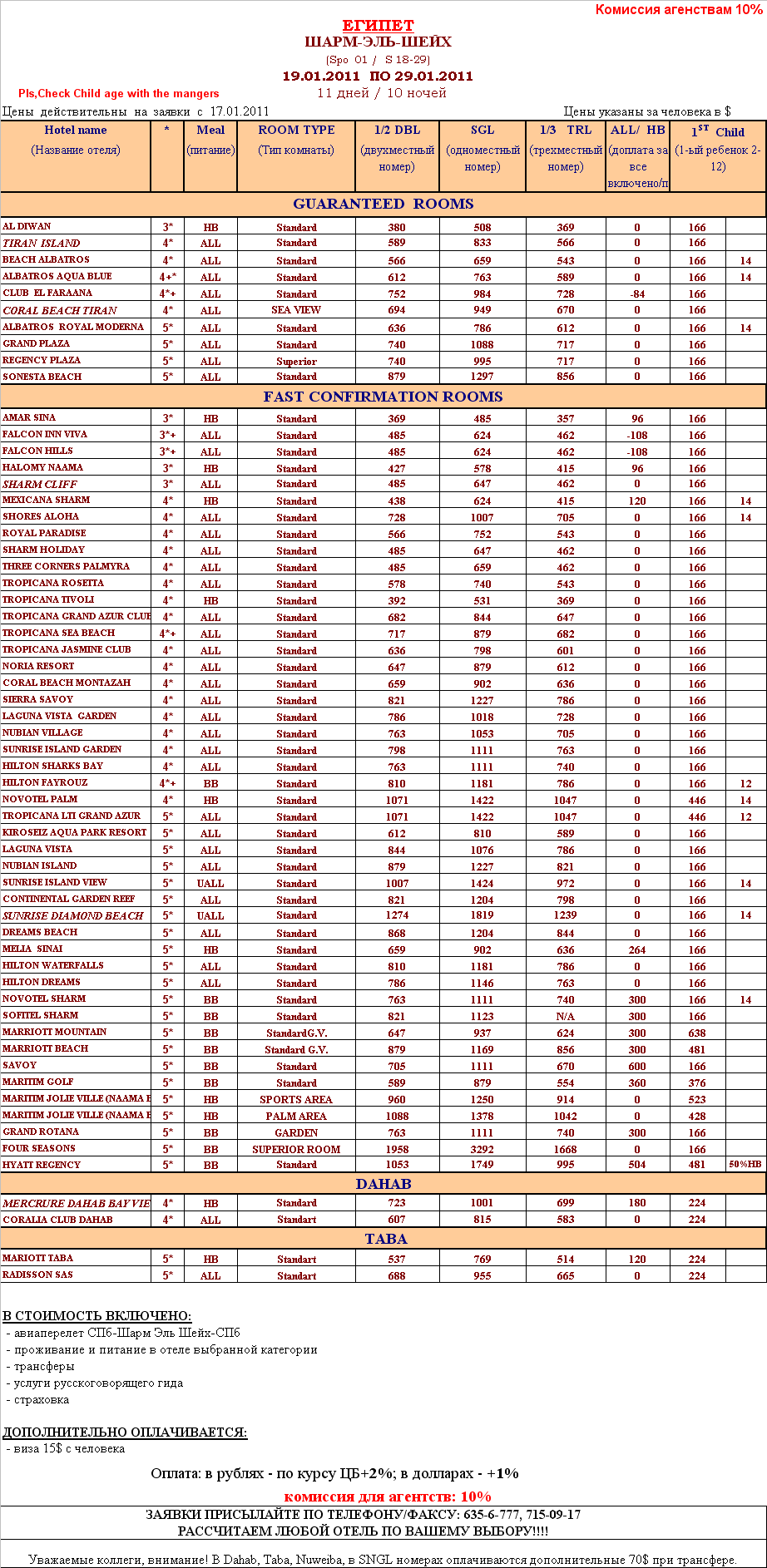 18 Янв 2011 12:48:01 ЕГИПЕТ - ШАРМ-ЭЛЬ-ШЕЙХ с 19.01 по 29.01 от фирмы EL DAKAMY TRAVEL