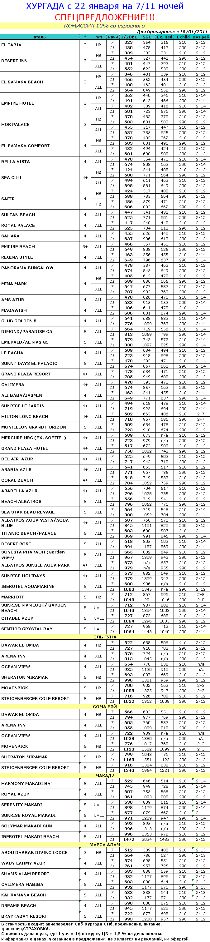 18 Янв 2011 15:55:48 ЕГИПЕТ - ХУРГАДА с 22.01 на 7/11 ночей от фирмы БАГИРА
