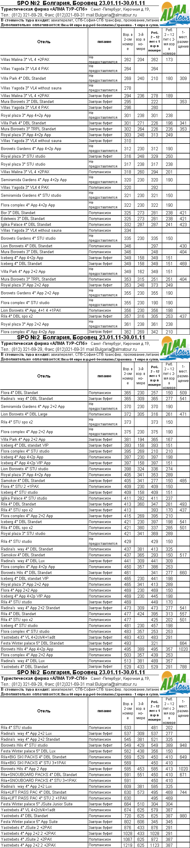 18 Янв 2011 16:48:57 БОЛГАРИЯ - БОРОВЕЦ 23.01-30.01 от фирмы АЛМА ТУР