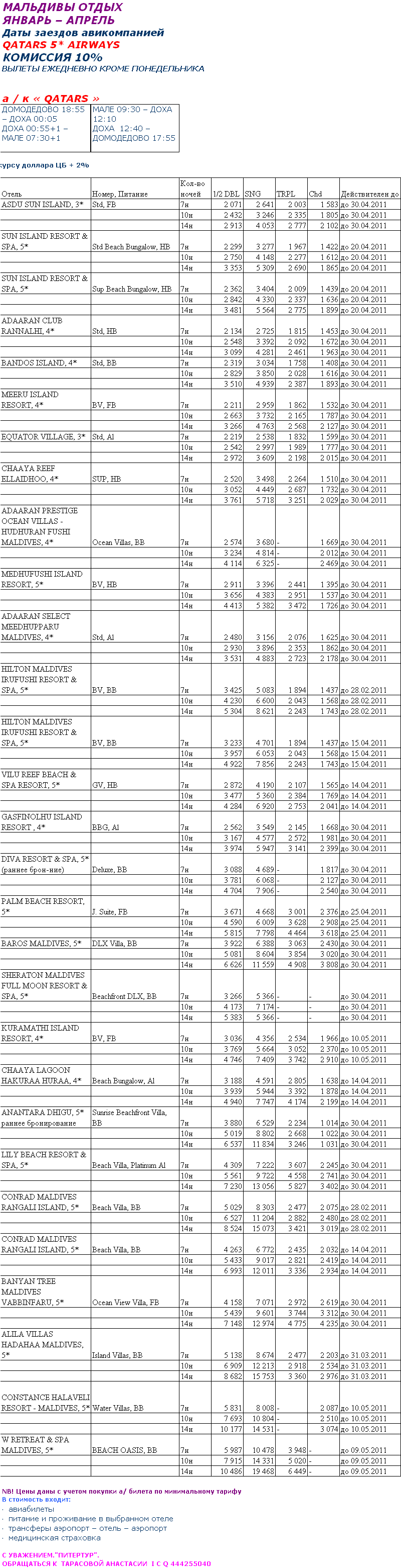 19 Янв 2011 10:09:23 МАЛЬДИВЫ из Мск - ОТДЫХ, январь-апрель СНИЖЕНИЕ ЦЕН от фирмы ПИТЕРТУР