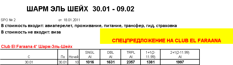 19 Янв 2011 11:28:04 ЕГИПЕТ - ШАРМ-ЭЛЬ-ШЕЙХ 30.01-09.02 - Club El Faraana 4* от фирмы VIVARILLA