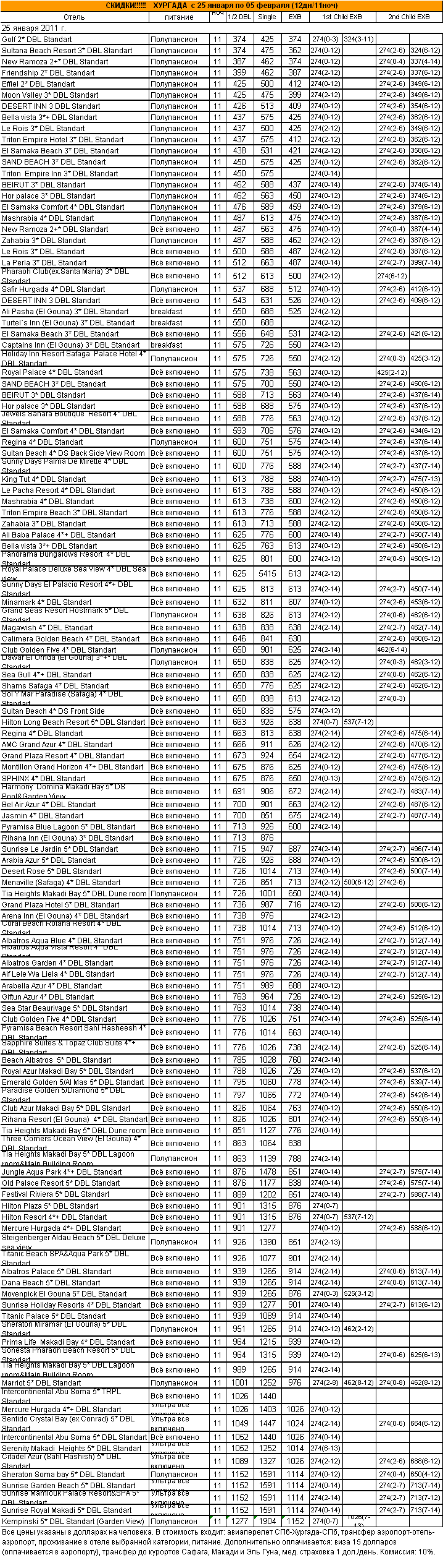19 Янв 2011 16:01:31 ЕГИПЕТ - ХУРГАДА 25.01 -05.02 от фирмы АЛМА ТУР