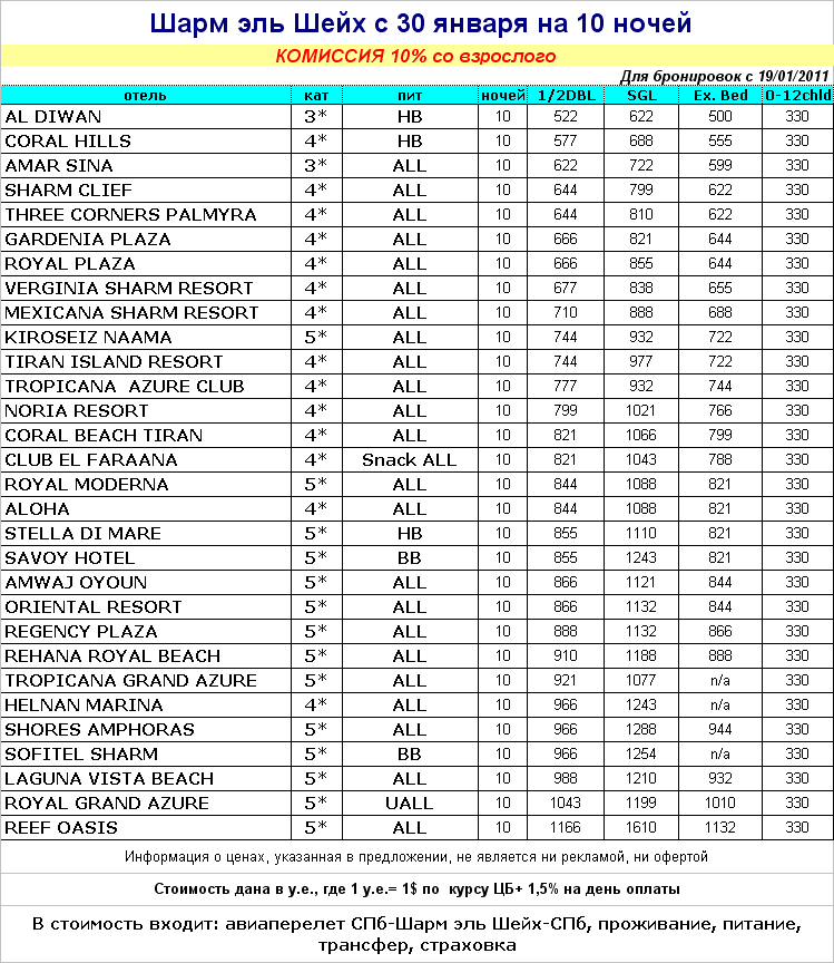 19 Янв 2011 14:45:04 ЕГИПЕТ - Шарм эль Шейх c 30 января на 10 ночей от фирмы БАГИРА
