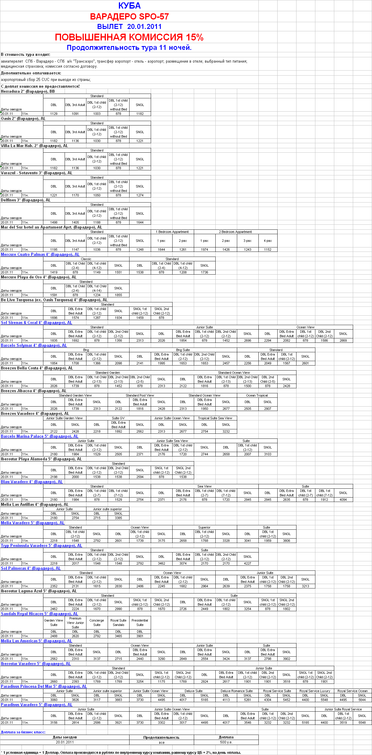 19 Янв 2011 15:10:15 КУБА ВАРАДЕРО ВЫЛЕТ 20 ЯНВАРЯ ПОВЫШЕННАЯ КОМИССИЯ 15% от фирмы ЮЖНЫЙ КРЕСТ