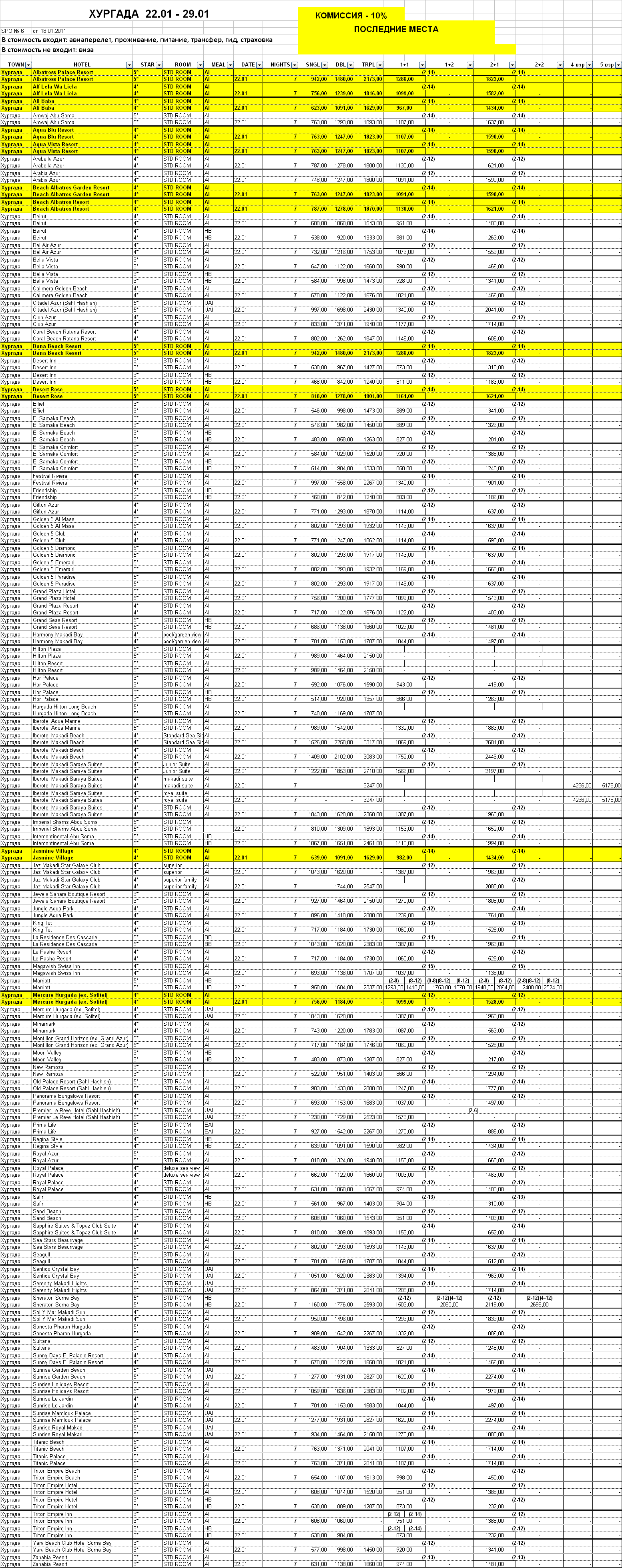 19 Янв 2011 18:50:26 ЕГИПЕТ - ХУРГАДА 22.01 - 29.01 от фирмы VIVARILLA