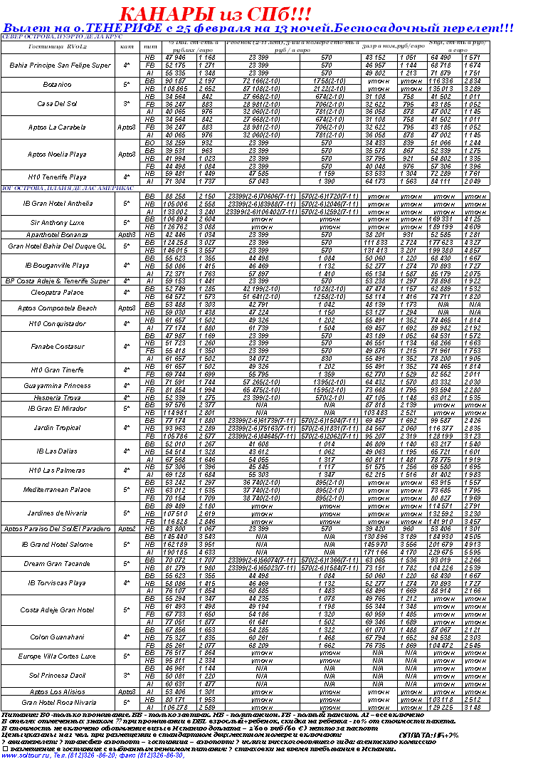ИСПАНИЯ - о.Тенерифе. БЕСПОСАДОЧНЫЙ ПЕРЕЛЁТ,вылет 25/02 на 13 ночей из СПб от фирмы СОЛЬТУР |