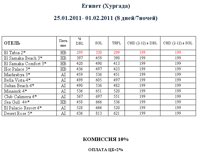 24 Янв 2011 14:30:10 ЕГИПЕТ - ГОРЯЩАЯ ХУРГАДА 25.01-01.02 от 299$ от фирмы TRIVE ТУР