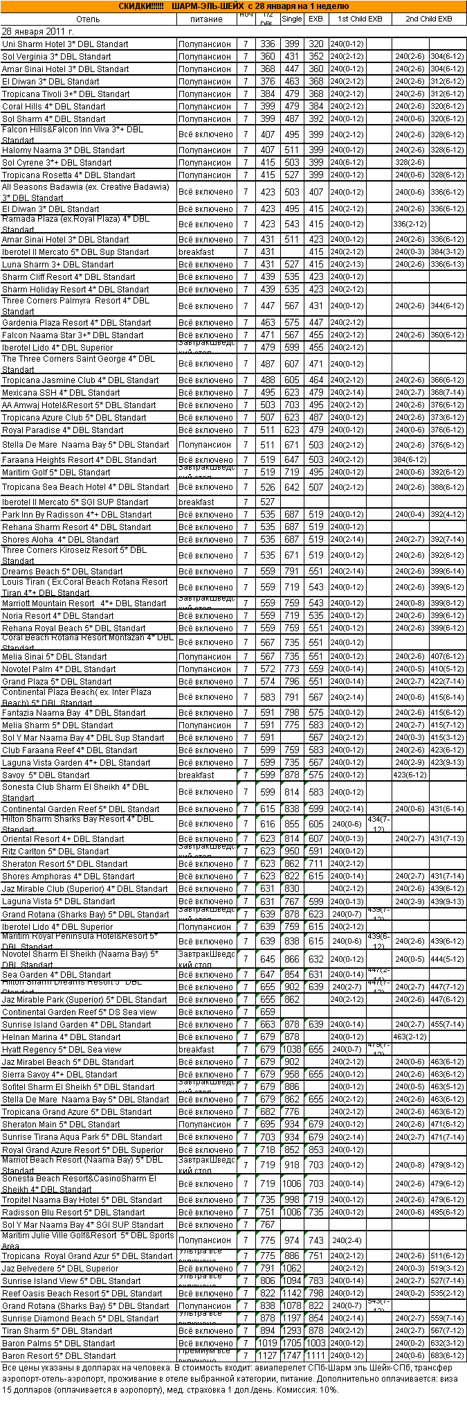 25 Янв 2011 14:03:35 ЕГИПЕТ. ШАРМ-ЭЛЬ-ШЕЙХ с 28 января на 1 неделю - от фирмы АЛМА ТУР