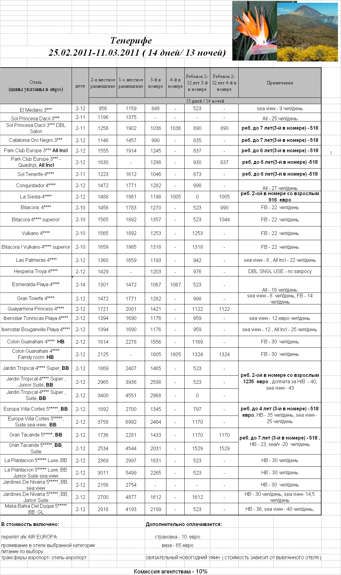25 Янв 2011 18:00:31 ИСПАНИЯ. Тенерифе 25.02.2011-11.03.2011 (14 дней/ 13 ночей) от фирмы ПРИМА