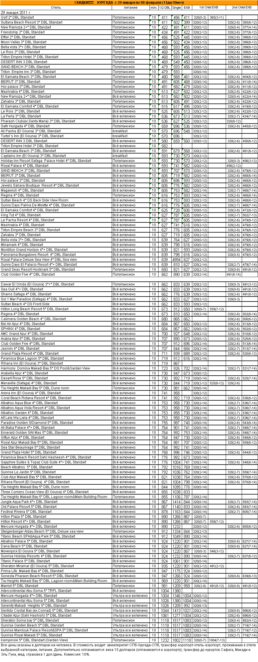 25 Янв 2011 16:51:36 ЕГИПЕТ. СПб-Хургада-СПб с 29.01 по 08.02 от фирмы АЛМА ТУР