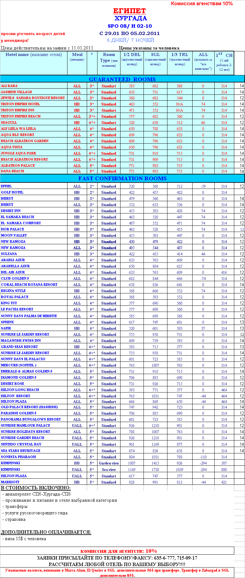 26 Янв 2011 11:55:35 ЕГИПЕТ - ХУРГАДА С 29.01 ПО 05.02.2011 от фирмы EL DAKAMY TRAVEL