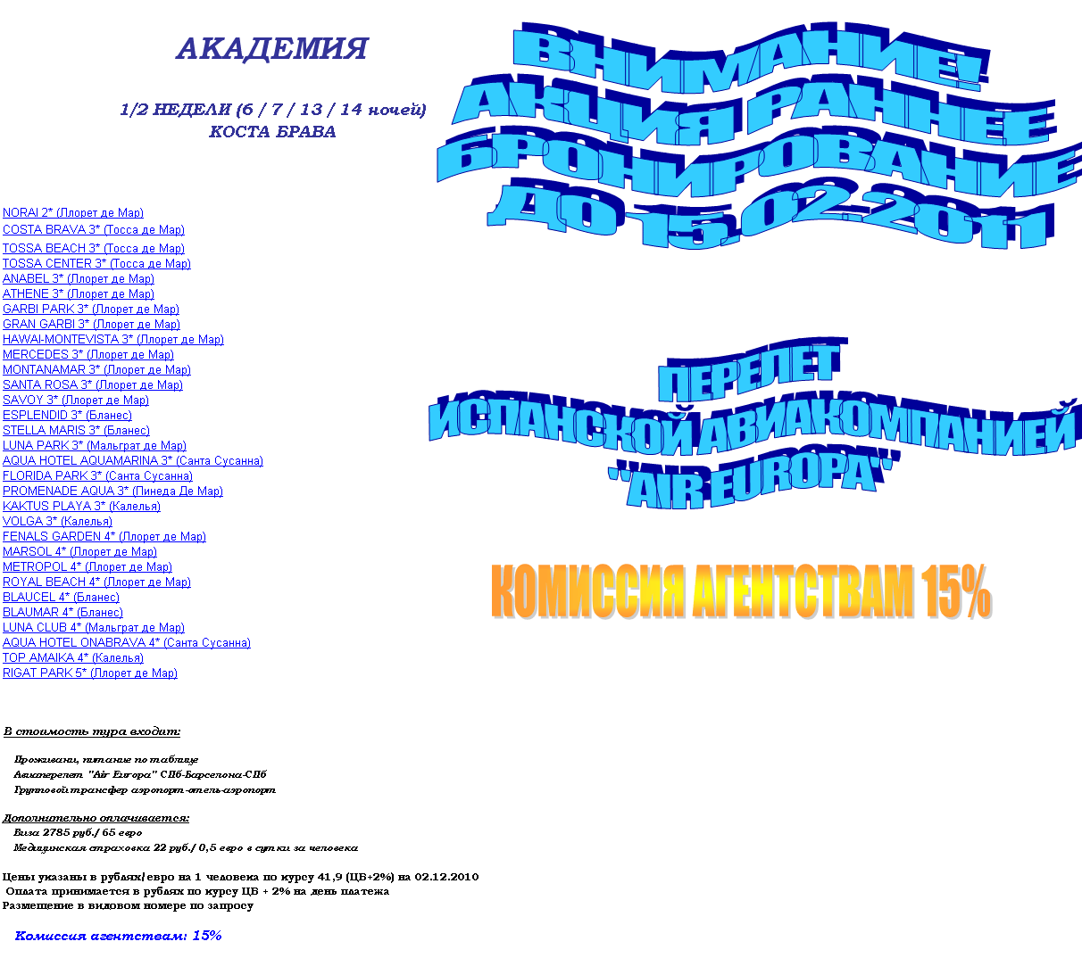 28 Янв 2011 10:14:04 ИСПАНИЯ - КОСТА БРАВА - 1/2 недели на 6/7/13/14 ночей - РАННЕЕ БРОНИРОВАНИЕ от фирмы АКАДЕМИЯ