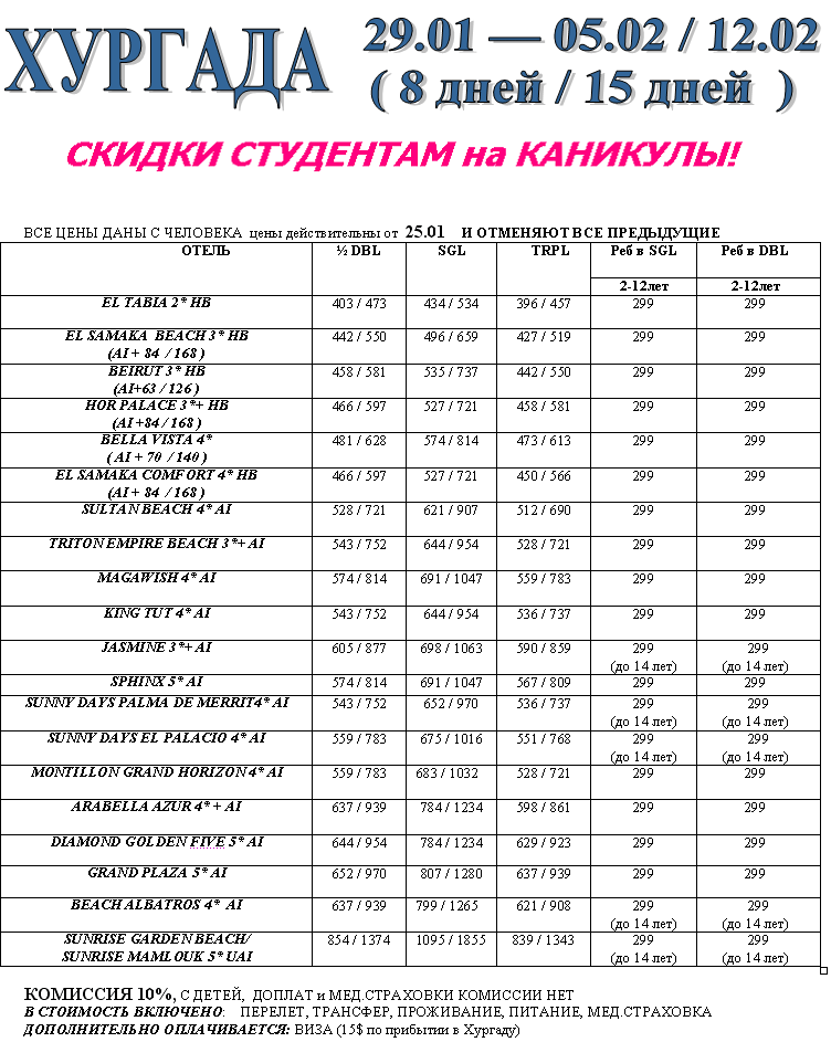 26 Янв 2011 16:30:15 ЕГИПЕТ. Хургада на СТУДЕНЧЕСКИЕ КАНИКУЛЫ! СУПЕР СПО! 29.01 от фирмы ФЛАМИНГО