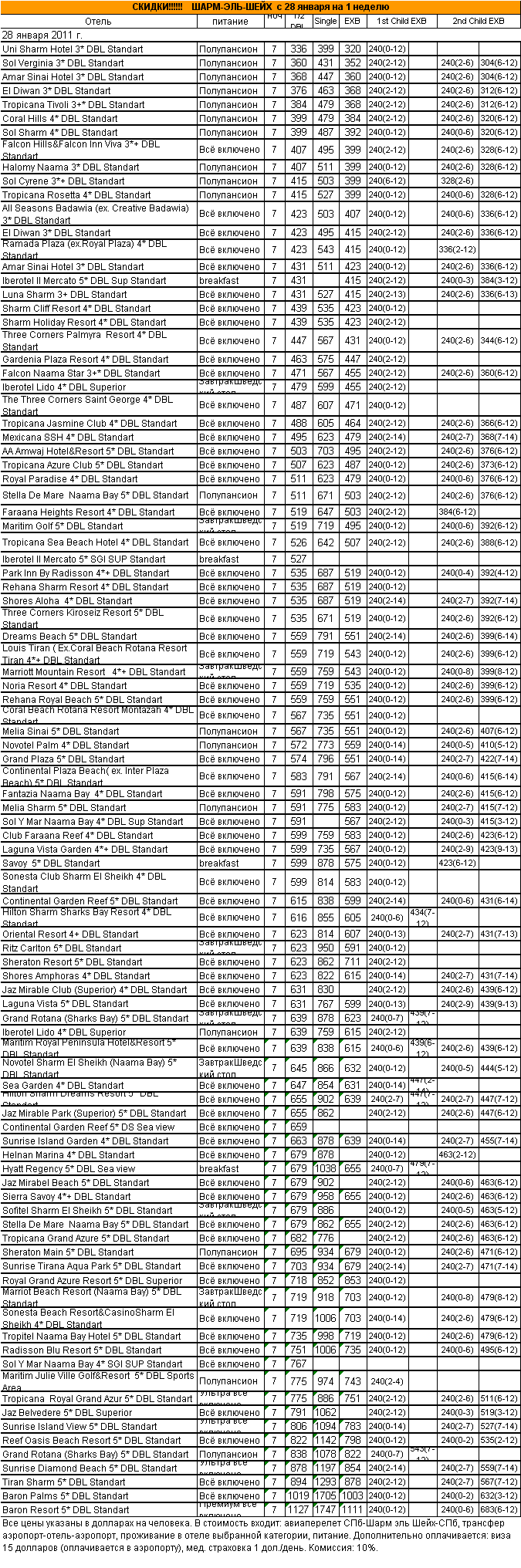27 Янв 2011 17:00:13 ЕГИПЕТ. ШАРМ-ЭЛЬ-ШЕЙХ с 28 января на 1 неделю - от фирмы АЛМА ТУР