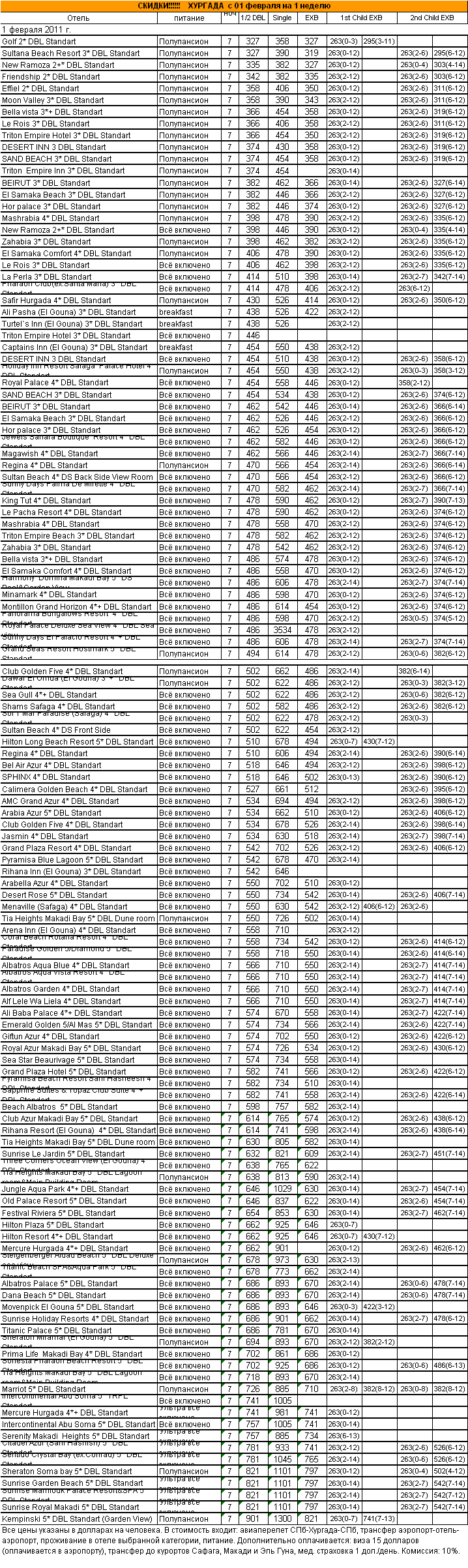 27 Янв 2011 11:32:13 ЕГИПЕТ. ХУРГАДА c 01 февраля на 1 неделю - от фирмы АЛМА ТУР