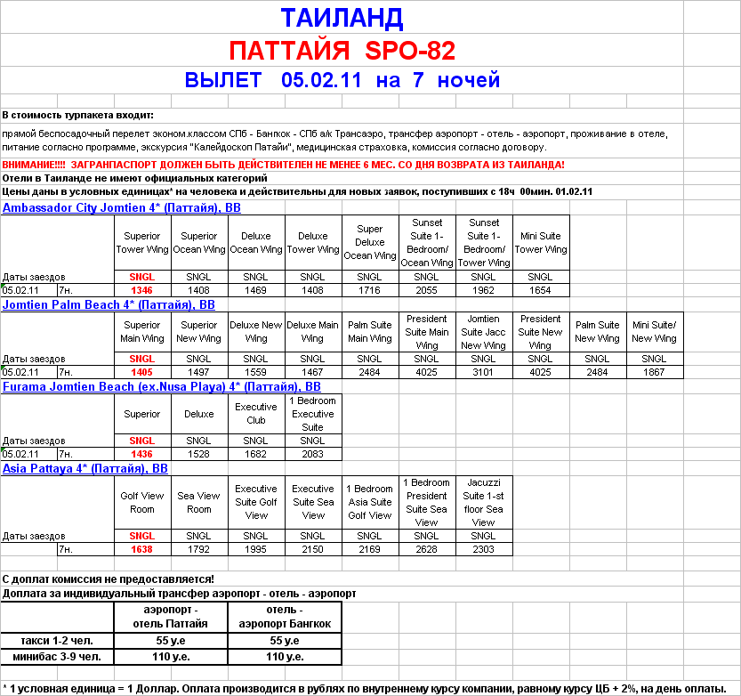 02 Фев 2011 17:01:26 ТАИЛАНД, ПАТТАЙЯ - ВЫЛЕТ 05.02 - ЛУЧШИЕ ЦЕНЫ НА SGL от фирмы ЮЖНЫЙ КРЕСТ