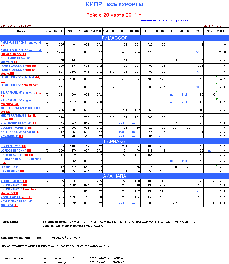 03 Фев 2011 11:55:08 КИПР - 20.03.2011 от фирмы АВАТАРА