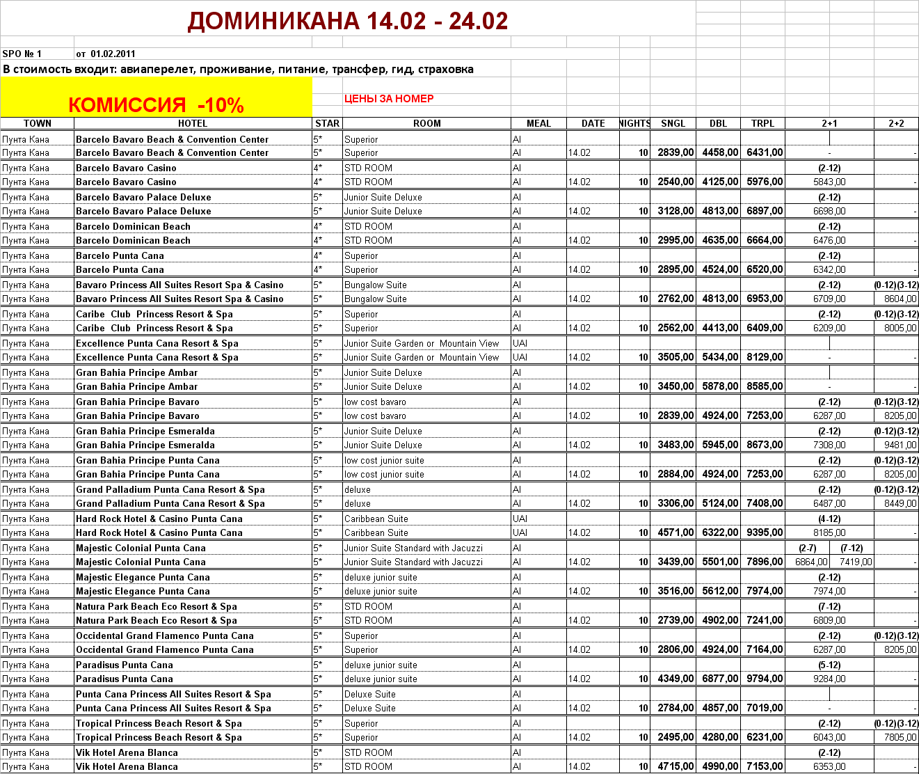 07 Фев 2011 14:06:20 ДОМИНИКАНА 14.02 - 24.02 от фирмы VIVARILLA