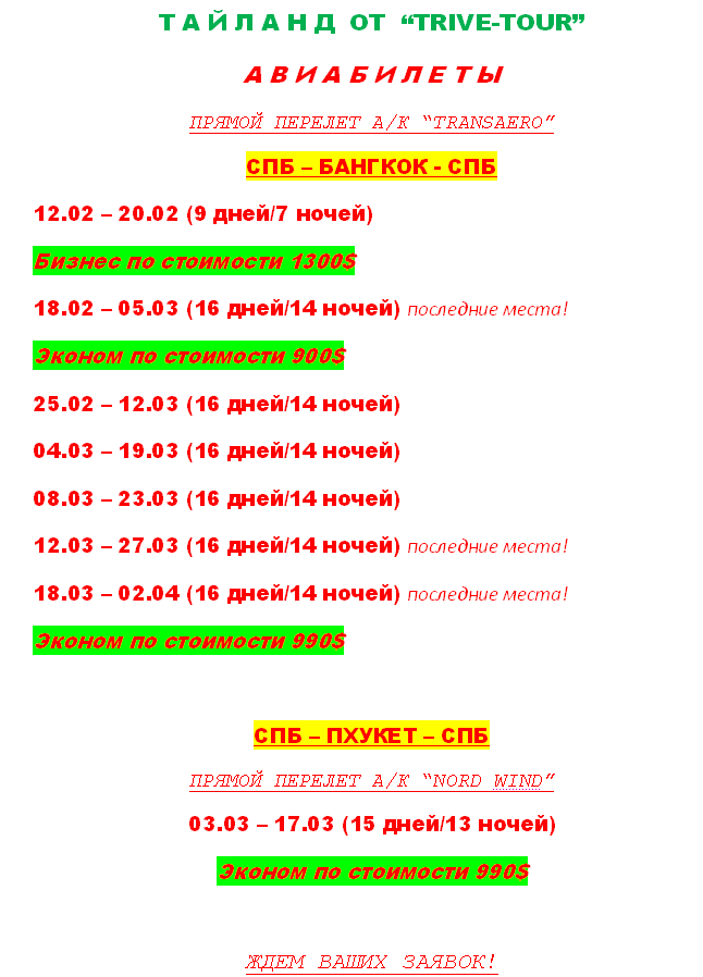09 Фев 2011 13:02:20 ТАЙЛАНД, авиабилеты от фирмы TRIVE ТУР