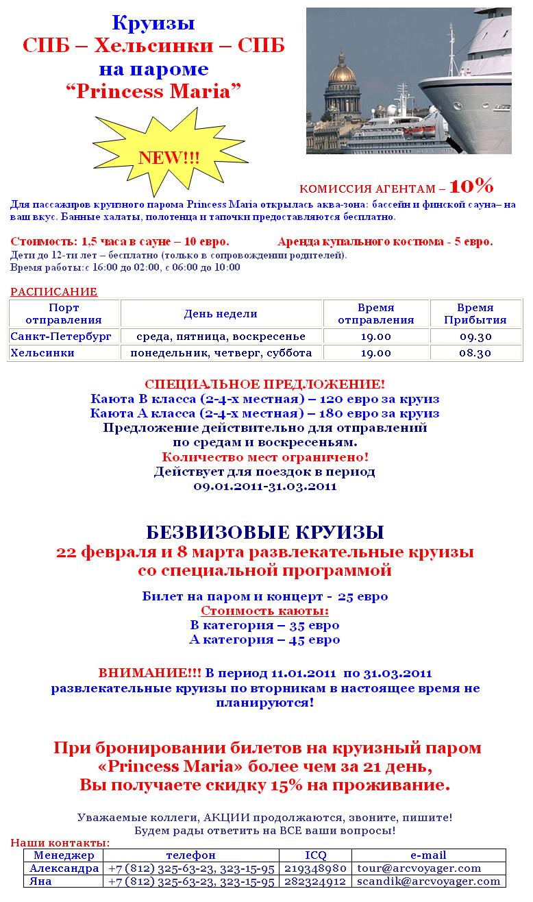 09 Фев 2011 14:08:02 КРУИЗЫ на пароме "PRINCESS MARIA" от фирмы АРКТУР ВОЯДЖЕР