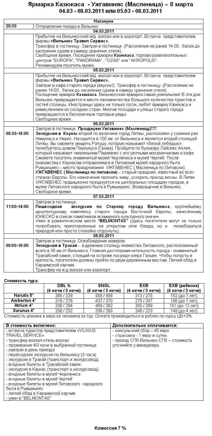 10 Фев 2011 10:25:36 ЛИТВА. Ярмарка Казюкаса - Ужгавиняс (Масленица) - 8 марта от фирмы ЭКСПОТУР