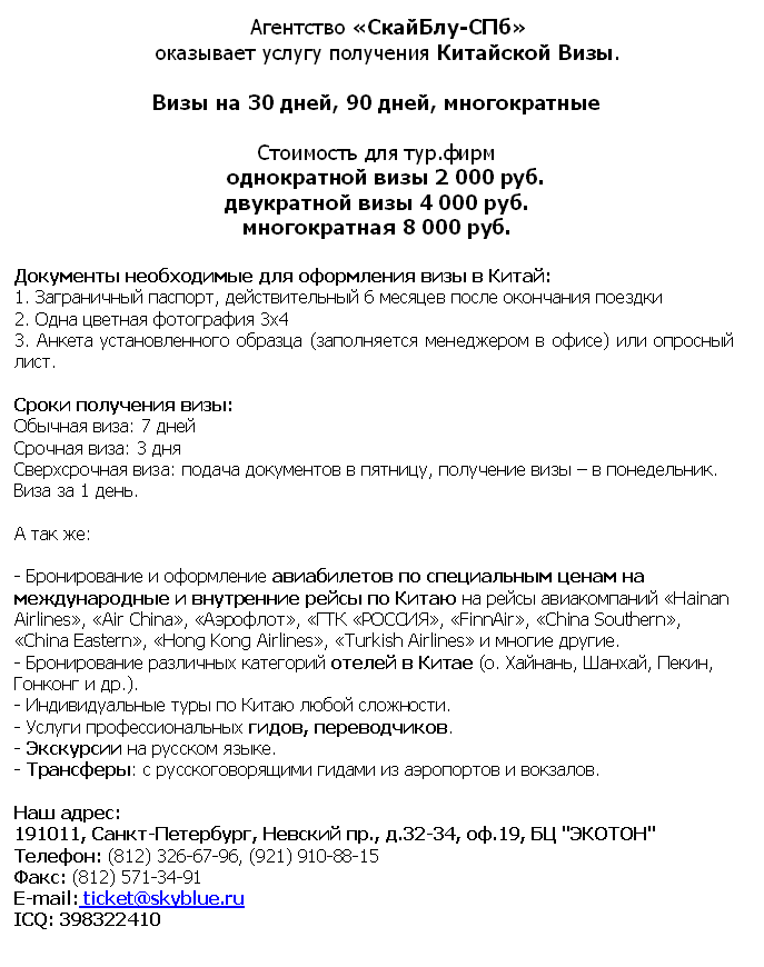 11 Фев 2011 11:18:08 ОФОРМЛЕНИЕ - Китайская Виза от фирмы SKY BLUE