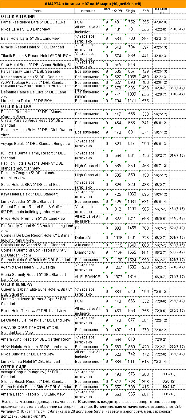 11 Фев 2011 12:46:11 ТУРЦИЯ, 8 марта в Анталии - от фирмы АЛМА ТУР