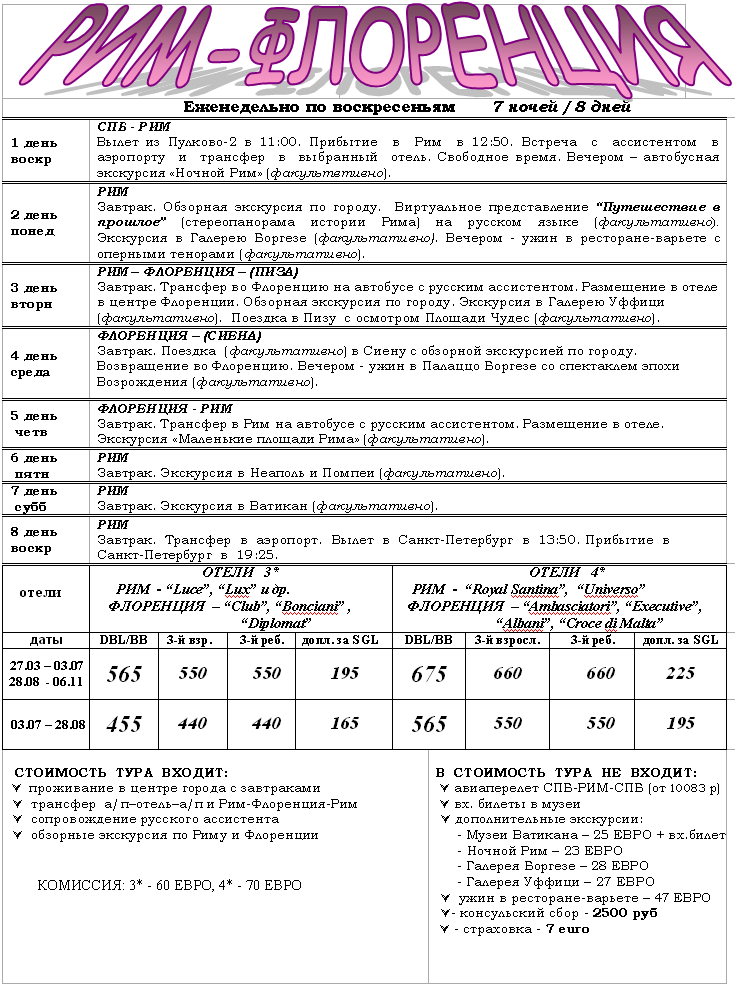 15 Фев 2011 12:05:51 ИТАЛИЯ. РИМ-ФЛОРЕНЦИЯ. Еженедельно по воскресеньям - от фирмы РОССИТА