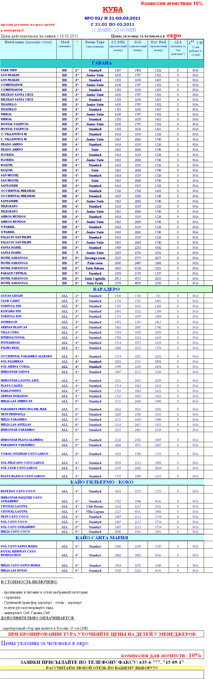 16 Фев 2011 15:04:16 КУБА 21.02-03.03 от фирмы EL DAKAMY TRAVEL