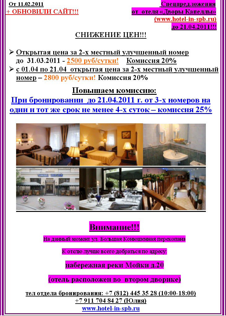 РОССИЯ - СПб - отель ДВОРЫ КАПЕЛЛЫ - Новые Цены, Повышенная Комиссия от фирмы HOTEL IN SPB |