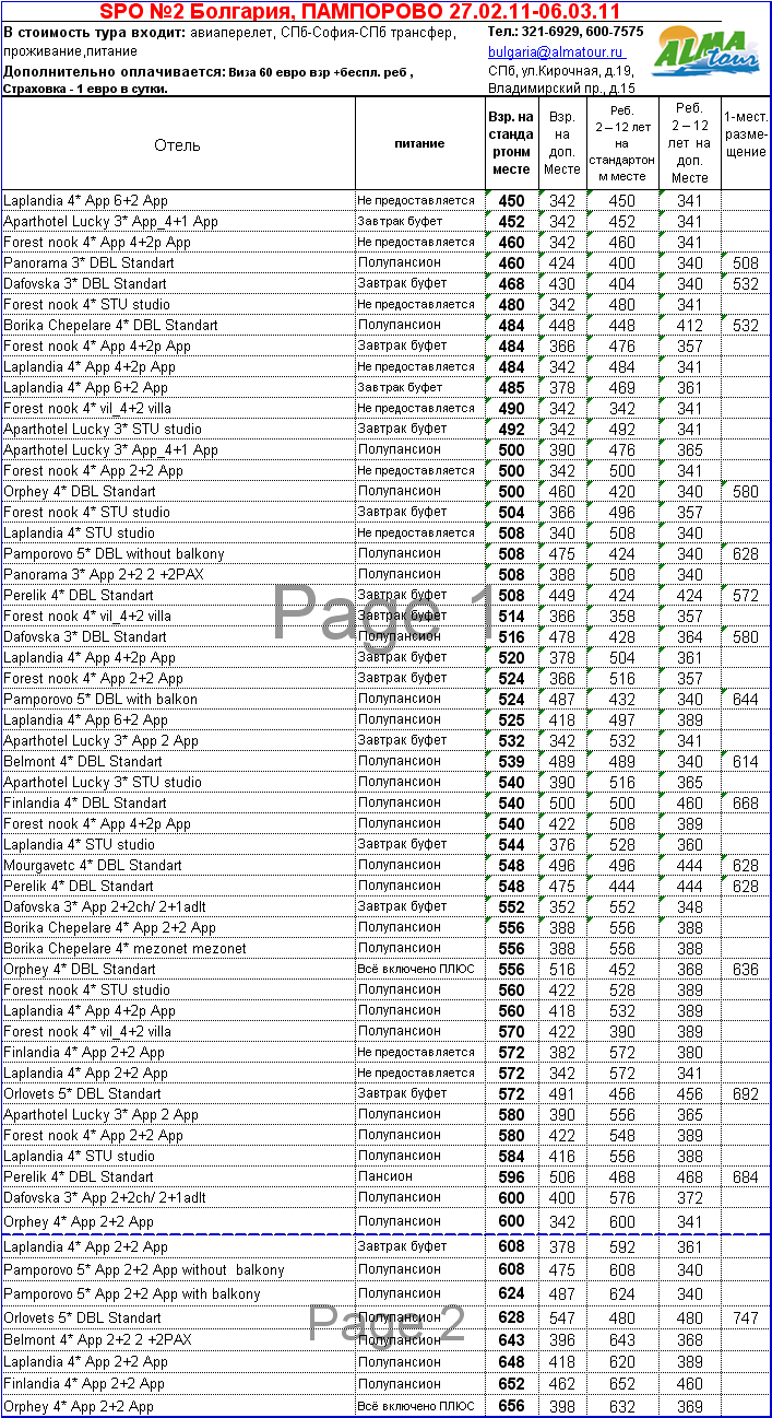 18 Фев 2011 11:29:26 БОЛГАРИЯ. ПАМПОРОВО. Горнолыжные туры с 27.02.11 ГАРАНТИРОВАННЫЕ МЕСТА от фирмы АЛМА ТУР