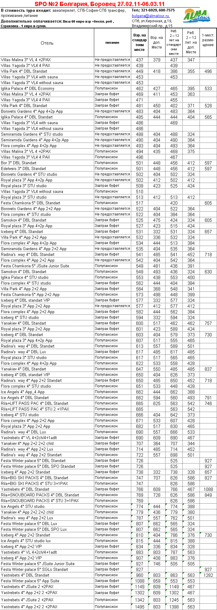 19 Фев 2011 13:11:01 БОЛГАРИЯ, Боровец 27.02.11-06.03.11 от фирмы АЛМА ТУР