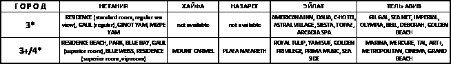 Иерусалим; Кейсария.Хайфа.Акко; Цфат; Галилея; ММ/Эйлат;
