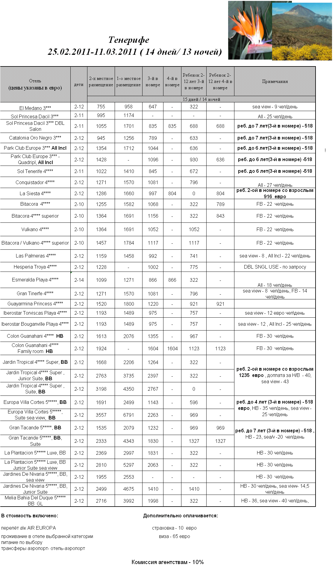 21 Фев 2011 15:42:04 ИСПАНИЯ - ТЕНЕРИФЕ 25.02-11.03 от фирмы ПРИМА