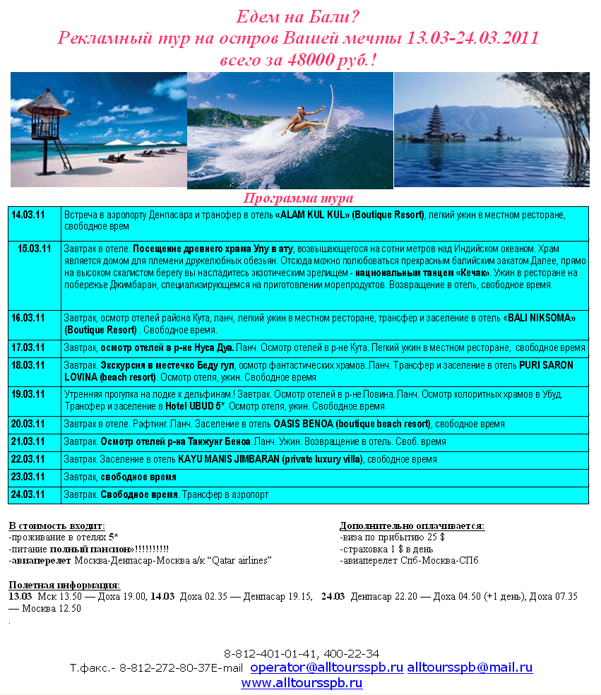 25 Фев 2011 15:03:04 РЕКЛАМНЫЙ ТУР НА БАЛИ 13.03-24.03.2011 от фирмы ОЛЛТУРС