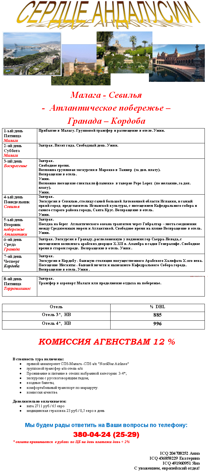 01 Мар 2011 15:00:28 ИСПАНИЯ, КОСТА ДЕЛЬ СОЛЬ классический тур "Сердце Андалусии" 3.06 от 885 евро от фирмы АКАДЕМИЯ