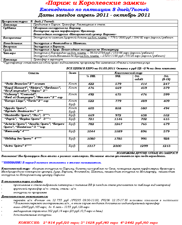 01 Мар 2011 16:59:47 ФРАНЦИЯ, Париж и Королевские замки от 422 евро от фирмы АКАДЕМИЯ